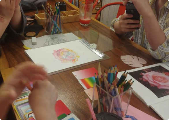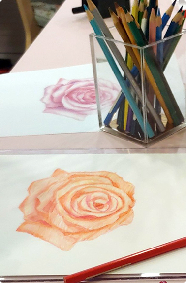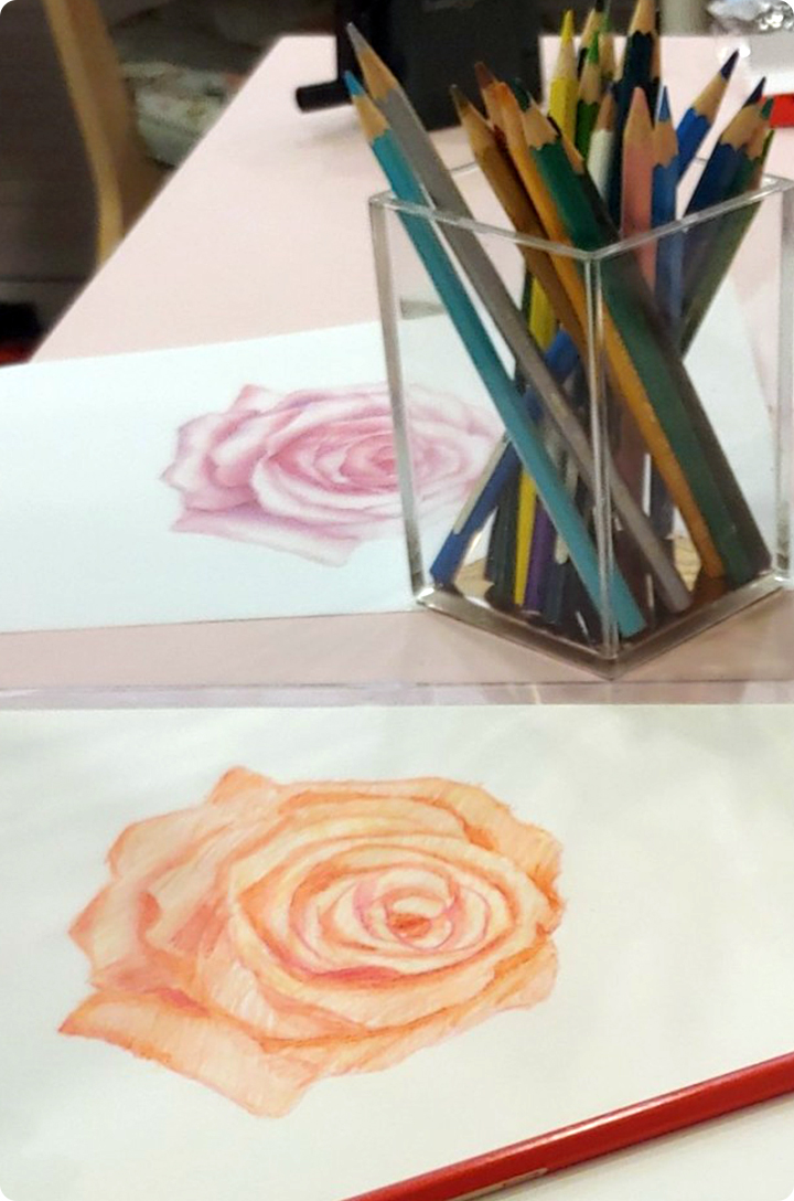 식물, 꽃, 꽃잎 등을 다양한 색깔의 색연필을 이용하여 정교하게 덧대어 그려 식물과 꽃의 독특한 특징을 표현해 보세요.